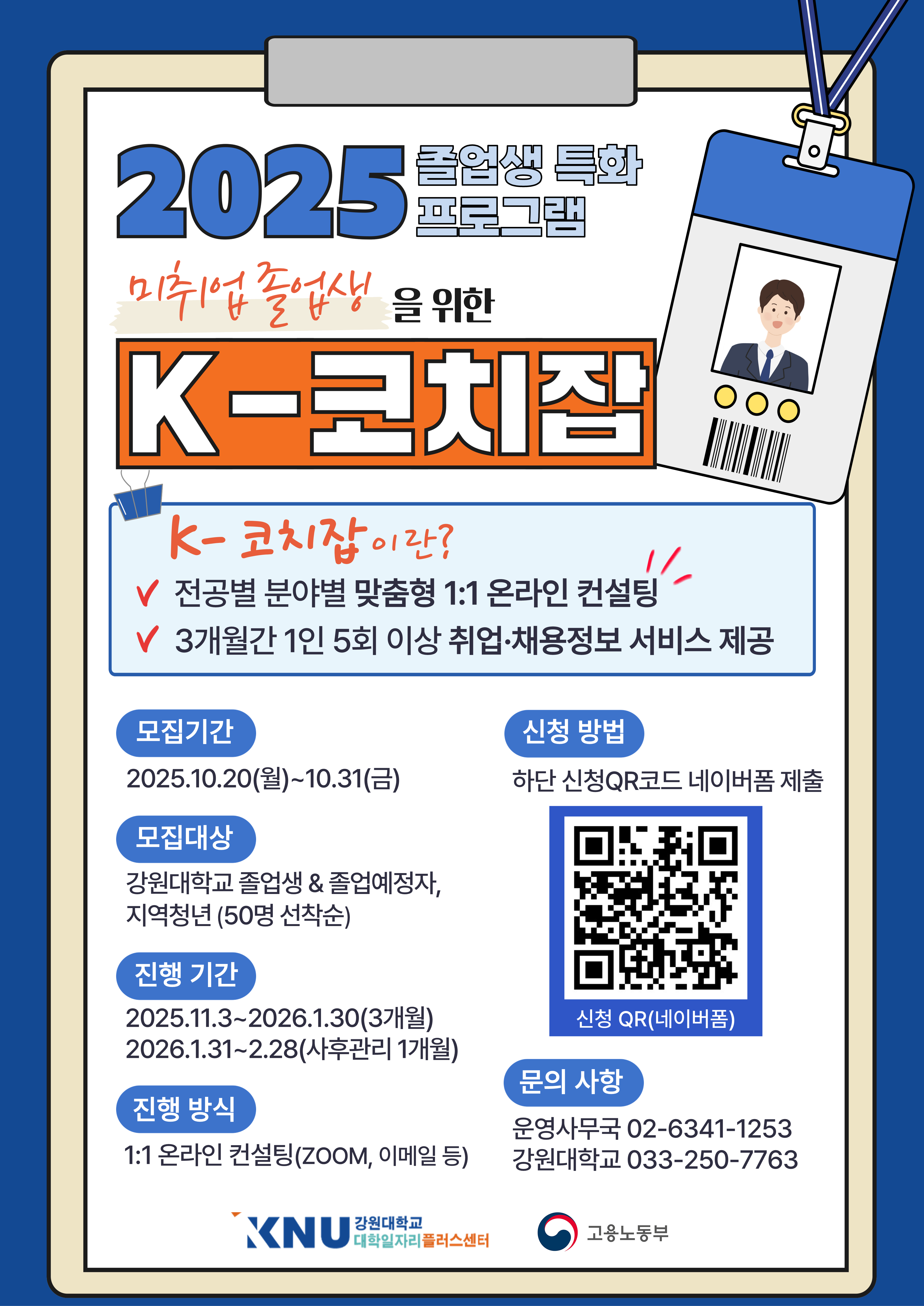 2025 미취업졸업생을 위한 「K-코치잡」 프로그램 참여 안내